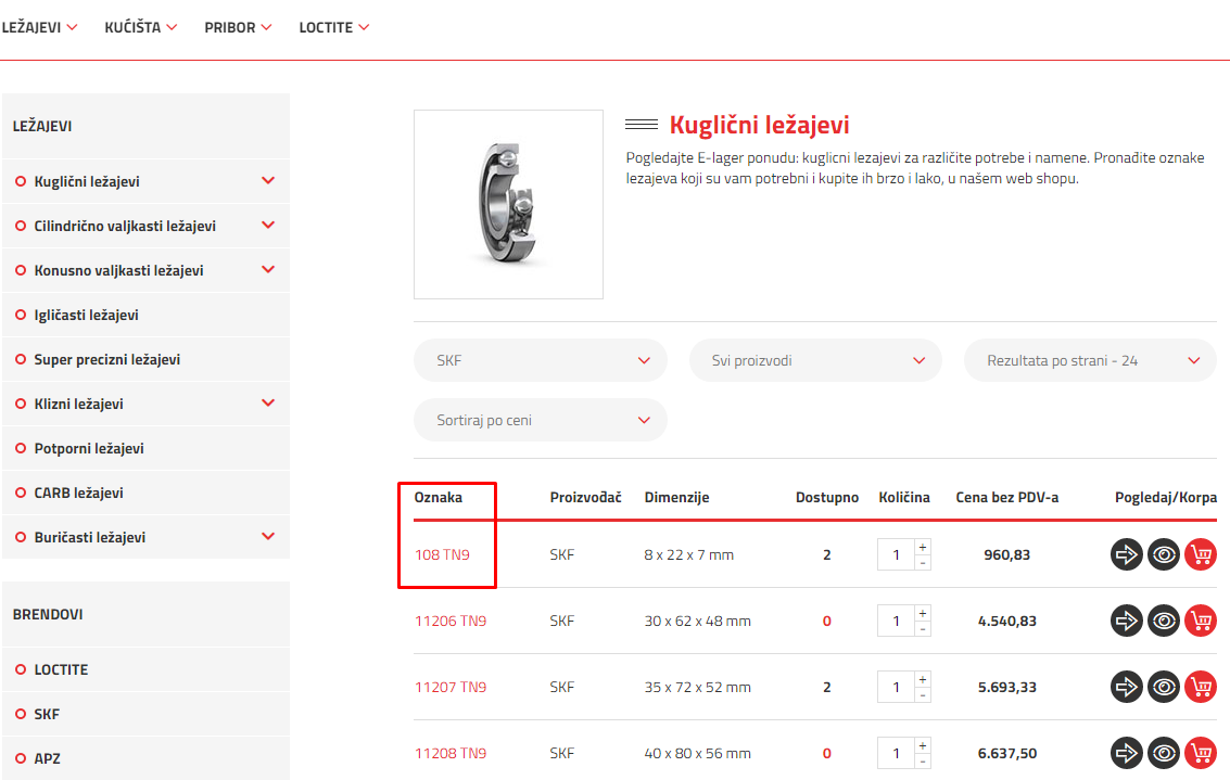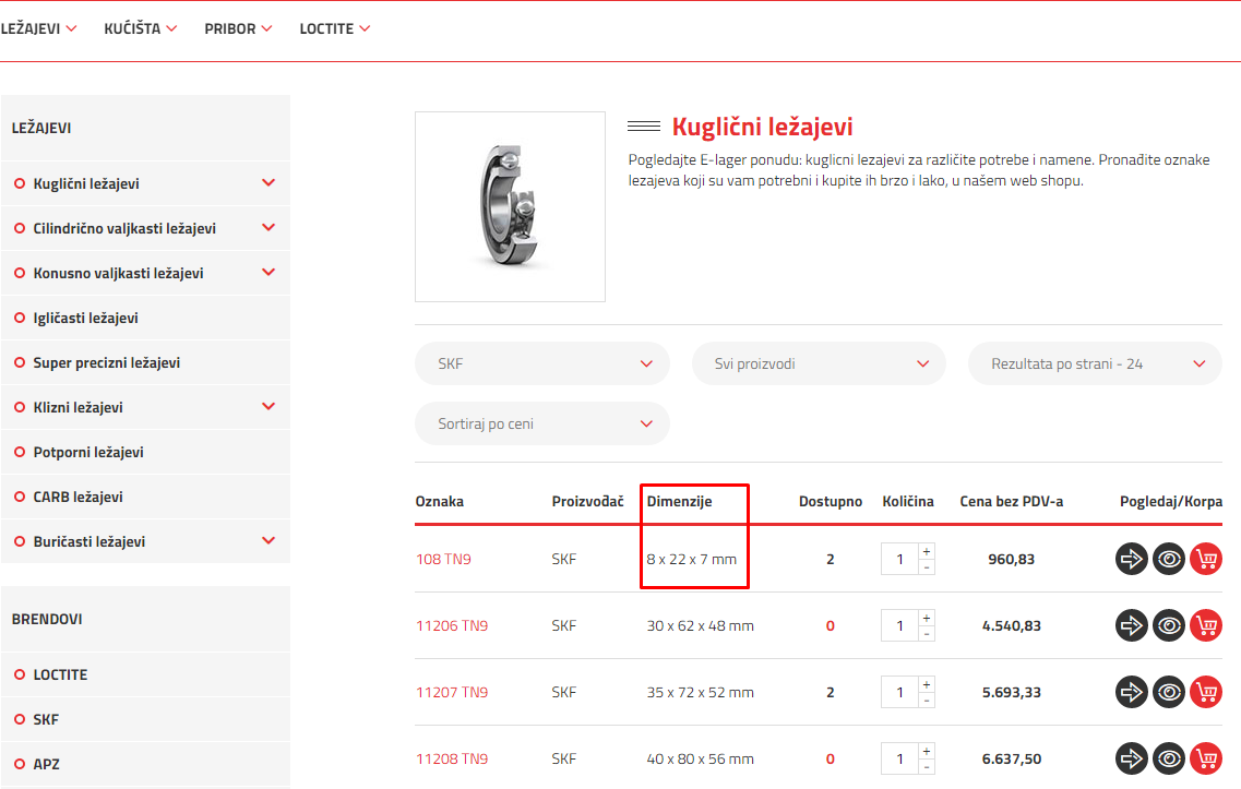 I, onda dođete na sajt kao što je recimo naš i pogledate našu ponudu ležajeva i kućišta. Kliknete tip ležajeva i pred vama je otvoren panel pun nekakvih slova, brojki, i još dodatnih dimenzija.